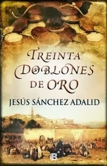 Treinta doblones de oro, de Jesús Sánchez Adalid (Ediciones B): «En las postrimerías del siglo XVII, la esplendorosa Sevilla languidece al perder  su monopolio de los negocios de ultramar, como consecuencia de las nuevas leyes  de la Contratación, que benefician a Cádiz. En un noble caserón, el joven  Cayetano sirve como contable de don Manuel de Paredes, cuando se recibe una  fatal noticia: el navío Jesús Nazareno se ha hundido por un temporal; la  preciada carga se ha perdido en el fondo del mar, naufragando las últimas  esperanzas de salir de la ruina de don Manuel, su esposa y su servidumbre, que  habían invertido todos sus bienes en la empresa. La casa y las pertenencias  familiares están hipotecadas y se presenta un porvenir incierto… No obstante,  se enciende una luz de esperanza gracias a unas propiedades heredadas en las Islas Canarias. Hay pues que viajar allá y afrontar peligros y adversidades…  Sin perder el tono aventurero, el autor nos introducirá en el misterio profundo  del ser humano, sus temores, sus dudas y sus esperanzas, entre originales  episodios llenos de humor y vitalidad.»http://novelas-historicas.blogspot.com.es/2013/11/treinta-doblones-de-oro-de-jesus.html