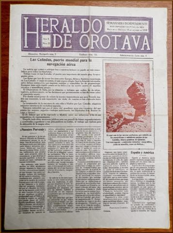 Ejemplo de ello lo encontramos en la editorial del nº. 21, de 1 octubre de 1922, cuando comenzaba su segunda etapa: “HERALDO DE OROTAVA, pues, continuará sosteniendo la independencia de criterio de siempre, sin titubeos ni claudicaciones; atendiendo, en primer término, a los asuntos de interés general para el país.”