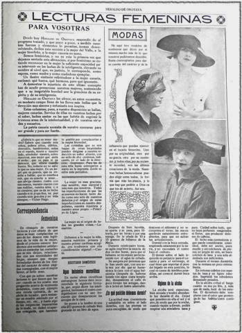 HERALDO DE OROTAVA contemplaba además otro tipo de información dirigida a la juventud, al recién estrenado deporte del fútbol, o a las mujeres, enalteciendo incluso en algunas ocasiones la actitud “feminista” asumida por la editorial (aún incipiente por lo que se desprende del contenido de los artículos): “Somos feministas, y no es esta la primera vez que dejamos sentada esta afirmación, si por feminismo se entiende reconocer en la mujer la suficiente capacidad para intervenir en las luchas de la inteligencia, elevando su nombre al nivel que, en justicia, le corresponde , como esposa, como madre y como ciudadana ejemplar.”