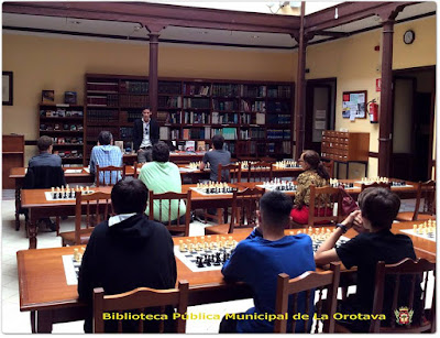 1º) SIMULTÁNEA DE AJEDREZ, el sábado 24 de octubre a las 11’00 h., en el que el instructor FIDE de Ajedrez J. David Martín Hernández se enfrentó simultáneamente a los contrincantes que quisieron participar, sin importar la edad o el nivel de ajedrez que cada uno poseía.